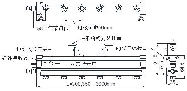 1、 為棒型、橫置式靜電消除器。