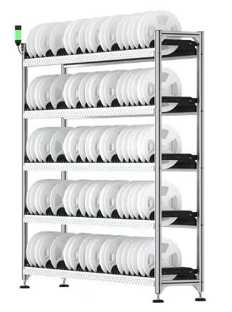 A型智能料架為標(biāo)準(zhǔn)7寸料盤存儲(chǔ)料架,雙面存放,1400個(gè)儲(chǔ)位,單色,多色可選,最大可支持7色